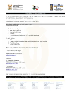 Learnership 2025/2026;Flavius Mareka TVET College Plant Production